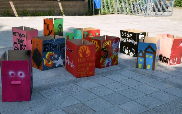 Woensdag gaan ze naar Den Haag. De ouders en kinderen hebben met hulp van Defence for Children een kort geding aangespannen en ze willen hun zaak bij de rechter bepleiten. Maandagmiddag beschilderden ze onder leiding van kunstenaar Chris Veldhof de verhuisdozen en vulden die met hun zorgen en verdriet. De dozen gaan mee naar den Haag.