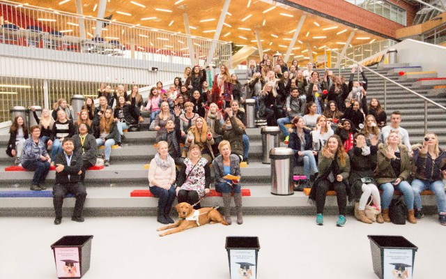 Zestig eerstejaarsstudenten Helpende Zorg en Welzijn hebben er samen met docenten voor gezorgd dat het ROC van Twente in Almelo als eerste ROC-locatie een officieel inzamelpunt wordt voor KNGF Geleidehonden. Ze zetten zich in door zoveel mogelijk plastic doppen in te zamelen.Samen met Bianca Stokkingreef van het KNGF onthulden zij 3 december het deponeerpunt als officiële start van de actie waarvan de studenten ambassadeurs zijn. Zij gaf tevens een presentatie aan de leerlingen waarin ze vertelde hoe het is om te leven met een visuele beperking. Ook liet ze zien wat haar hond Monty voor haar betekent om zelfstandig te kunnen functioneren.