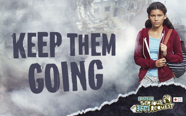 Dit jaar wordt tijdens Serious Request aandacht gevraagd voor de stille slachtoffers van oorlogen en conflicten. Kinderen en jongeren in oorlogsgebieden zijn vooral bezig met overleven en kunnen niet naar school of zich voorbereiden op werk. Het Rode Kruis zorgt dat zij zich weer kunnen ontwikkelen door hen basisvaardigheden te leren, zoals Engels, Arabisch, wiskunde en ICT.
