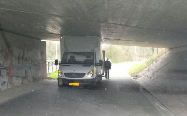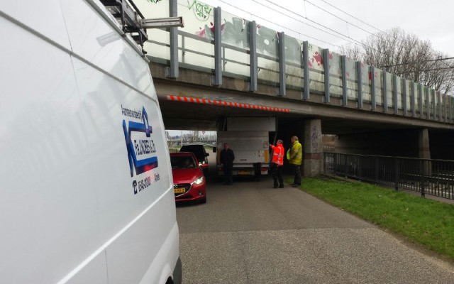 Een vrachtwagenchauffeur kwam vrijdagmorgen met zijn voertuig vast te zitten onder het viaduct op de parallelweg van de Schuilenburgsingel. De chauffeur schatte de hoogte van de onderdoorgang waarschijnlijk verkeerd in, waardoor de wagen vast kwam te zitten. De bovenkant van het voertuig is zichtbaar beschadigd. Het overige verkeer ondervond weinig hinder.