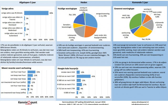 Verhuizen binnen de stadsgrenzen doen negen van de tien Almeloërs. Althans als het gaat om de panelleden van het AlmeloPanel. De gemeente doet regelmatig onderzoek naar wat er onder de bevolking leeft. Ruim tweeduizend inwoners zijn lid van het panel. Van het deel van de ondervraagden die zijn verhuisd in de afgelopen vijf jaar, deed bijna 90% dat binnen de gemeentegrens. De keuze voor een meer geschikte woning of relationele redenen, zoals scheiding of juist samenwonen, zijn de meest voorkomende reden om te verhuizen.
