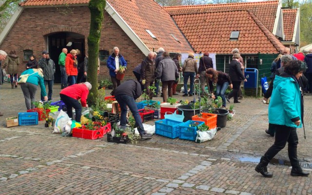 De voorjaarsplantenruil van Groei & Bloei was gezegend met mooi weer, zaterdagmorgen. Ieder half jaar is het een drukbezocht evenement. Leden van Groei & Bloei hebben hun tuinen na de winter weer opgeschoond voor de zomer. Daar komt heel wat scheuren en rooien bij kijken.In plaats van de overtollige planten in de compost- of groene ton te gooien nemen ze dat ieder half jaar mee naar de plantenruil bij stadsboerderij Beeklust. Daar wordt het langs de muren neergezet. Leden maar ook niet-leden worden van harte uitgenodigd om mee te delen en menigeen bekijkt alvast wat hij straks mee naar huis zal nemen. Per persoon mag na het startsein elke keer één plantje naar de verzameling nog lege kratten worden gebracht.