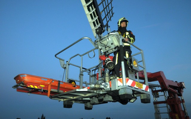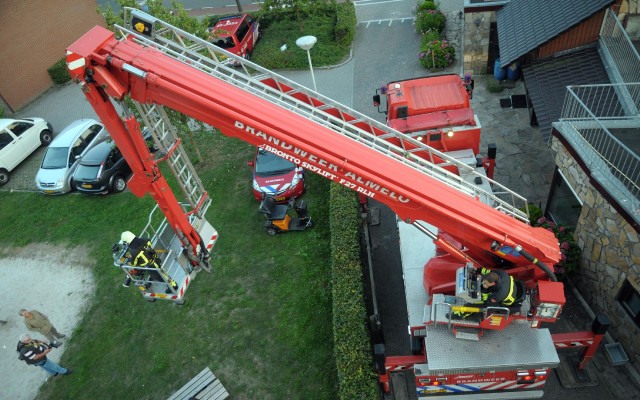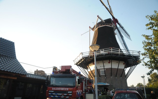 De Brandweer Almelo verzorgde maandagavond de eerste van een reeks van vijf brandweeroefeningen bij korenmolen De Hoop aan de Nieuwstraat. Zestien man sterk onder aanvoering van bevelvoerder Bert Wiltvank traden aan. Ze hadden behalve de tankwagen ook de imposante brandweerwagen met hoogwerker meegenomen. De brandweer hecht er aan op zo veel mogelijk verschillende locaties te oefenen. Molenaar opleider Eddy Blenke bracht de manschappen op de hoogte van de ins en outs van een korenmolen. Hoe breng je de wieken tot stilstand bijvoorbeeld. Geen sinecure.