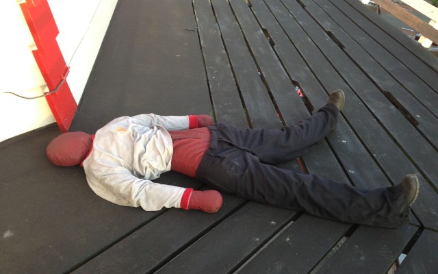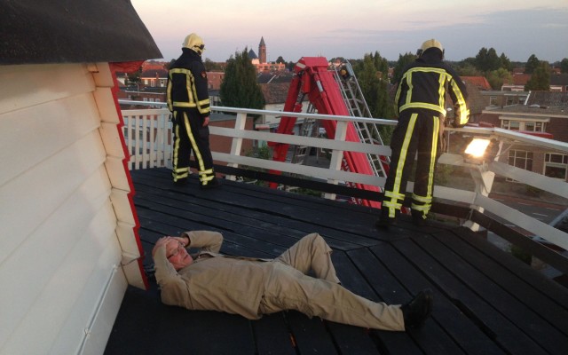 De molenaars van korenmolen De Hoop hadden een 'mooi' ongeluk geënsceneerd. De 67-jarige assistent molenaar Harrie van Workum bood zich als vrijwiller aan. Hij vond dat als er geoefend zou worden het dan ook zo echt mogelijk moest zijn.
