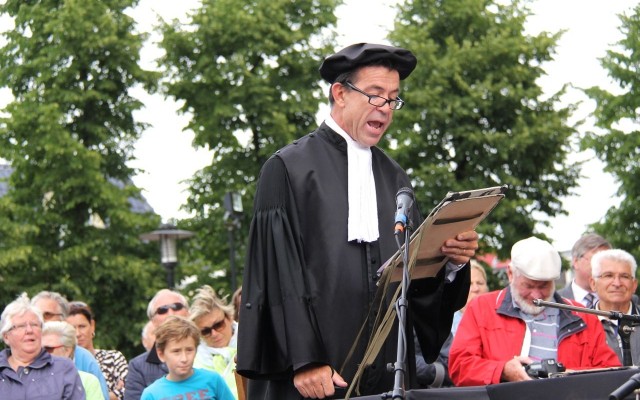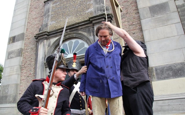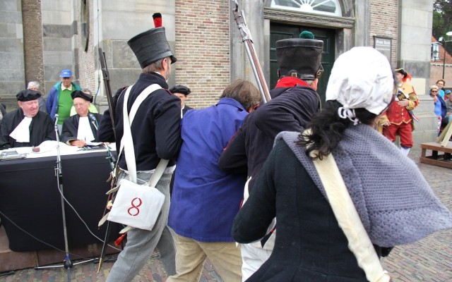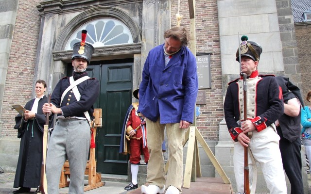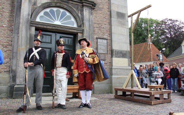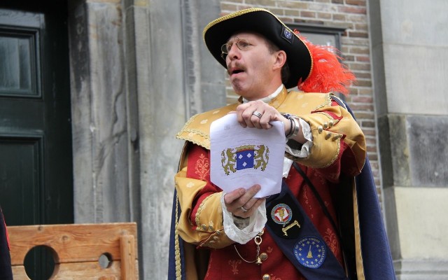 Luister ook naar de beul, gespeeld door Frans van der Pijl, van het Wevershuisje, Martijn Makkinga, als re-enactor ditmaal werkzaam in de Schutterij en René Coupé als vanouds in functie als stadsomroeper.