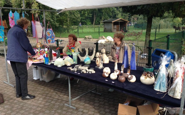 Voor het eerst dit jaar rondom de kinderboerderij, de najaarsmarkt van Groei & Bloei. Kraampjes met oogstproducten uit eigen tuin en nog veel meer.Favoriet was de pompoen, met een tongstrelende proeverij. Taarten, hartig en zoet. Ooit vanillepompoensoep geproefd? Hortensiakransen, kunstzinnig opgemaakte pompoenen en andere najaarsbloemen, keramiek, kunstnijverheid.