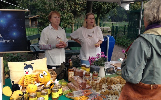 't Iemenschoer met allerlei bijenproducten. Zorgboerderij Piet zag zijn vogelflats als sneeuw voor de zon verdwijnen en Geerte’s Hof bracht tal van verrukkelijke oogstproducten, waar onder hun befaamde Johannesolie, uit de kruidentuin aan de man. Bloemen, bollen en zaden waren vertegenwoordigd. En ... AstronA, met een zonnekijker, want zonder de zon groeien er geen bloemen, zei Edwin Sarink.