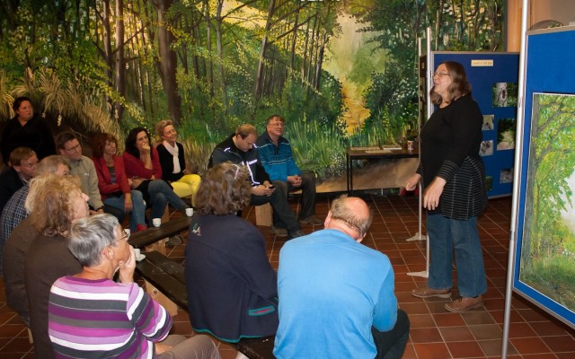 "Ha! Een pissebed!" riep Maryke Kwant van de tentoonstellingscommissie in haar welkomstpraatje bij de opening van de jaarlijkse tentoonstelling voor de basisscholen van het IVN in het Koetshuis aan de Jan Wiegerslaan in het Beeklustpark. Ze gaf met die uitroep aan dat bij deze tentoonstelling de nadruk ligt op het kleine gedierte, datgene wat rondscharrelt op en onder de bomen en de bomen zelf natuurlijk.