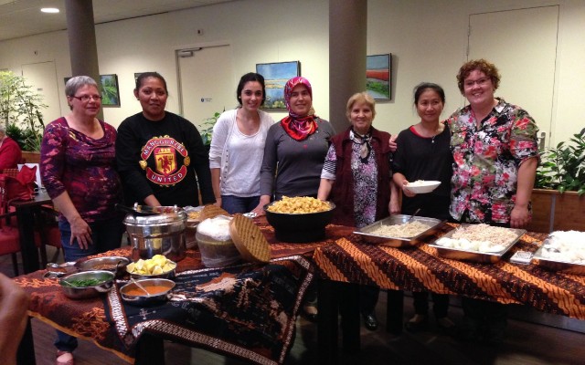 Elke maand komt er een andere nationaliteit aan bod en wordt er gekookt van 14.00-17.30 uur. Om 17.30 wordt het diner geserveerd. Aan het begin van de maand worden flyers verspreid in de buurt en kan men zich opgeven bij Carla Keupers tel. 0546 815392.Op 27 november is er een intercultureel hapjesbuffet. Er is plaats voor ca 20 personen en de maaltijd kost €7,- Snelheid is geboden want vol is vol.