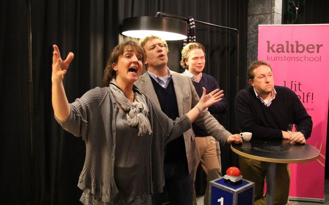 Jurylid Hanneke maakt de uitslag bekend van de Rumoer Nieuwsquiz 2013