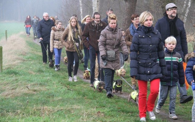 Meer dan tachtig teckels, begeleid door ruim 200 baasjes en bazinnetjes en gezelschap liepen de Teckel Wandeltocht zondagmiddag door het Nijreesbos en omgeving. Het was de zevende keer dat Gerrit Zwienenberg met administratieve assistentie van zijn vrouw Irene de tocht organiseerde.Het gezelschap werd op het erf van de familie Reinerink begroet door jachthoornensemble 'Kiek doar is' en kon zich verpozen met snert, glühwein en cholademelk. Ook Voor de teckels was er een versnapering. En er was een jarige! De driejarige teckel Kobus.