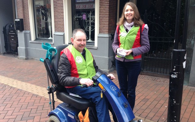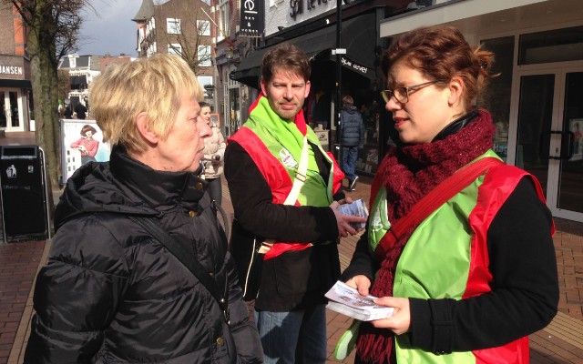 Kamerlid Linda Voortman van Groen Links was vrijdag in Almelo. Ze heeft o.a. zorg in haar portefeuille. Ze kwam de lokale campagne ondersteunen en de petitie van Groen Links over de zorg onder de aandacht brengen. Al flyerend liep ze samen met Jurgen Trip vanaf het station door de Grotestraat naar de Voedselbank. Opa en oma woonden daar vroeger in de buurt, in De Riet.