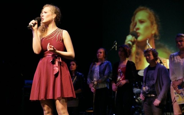 Hieronder interviews met ‘The Voice of Almelo’, Sara van der Laan, die ook haar winnende chanson ten gehore brengt, de publiekswinnaars Janna Heuvelman & Noortje Dam en de voorzitter van de jury Martijn Bakker, docent Kaliber Kunstenschool en een nummer van zanggroep 'Rumor Has It'. Foto's: Coen Mulder.