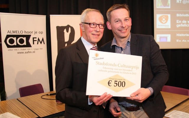 Het Historisch Festival Almelo heeft de Stadsfonds Almelo Cultuurprijs 2013 gewonnen. Dat werd donderdag in het programma Rumoer bekend gemaakt. De prijs, een sculptuur en een cheque van 500 euro, werd uitgereikt door oud-wethouder Bert Kuiper.De andere genomineerden waren het Pleinconcert, waar artiesten als Ali B en Cor Bakker optraden, en pianist Johan Bijkerk.