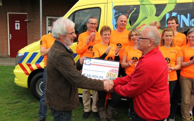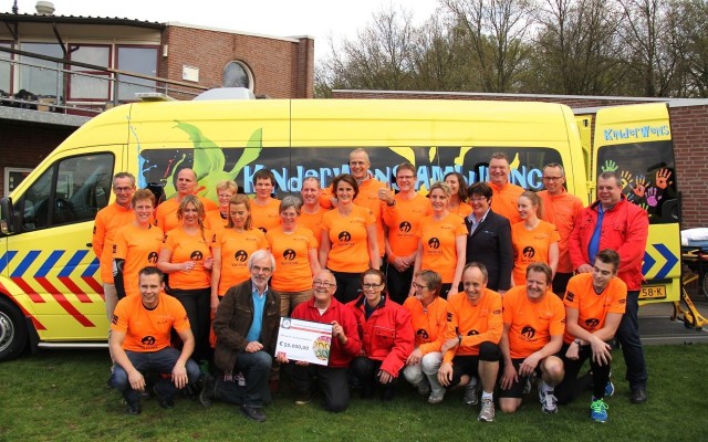 De Twentse Wensambulance kreeg vrijdagmiddag een cheque van € 50.000,- van de Stichting Roparun. Temidden van een groot aantal in de oranje wedstrijdshirts gehulde Almeloopers kreeg Cor Havelaar, aanvoerder van de Twentse Wensambulances de cheque uit handen van de voorlichter van Roparun, Arie Wezemer. De Almeloopers hebben de afgelopen vijf jaar al € 178.950,05 bijeengebracht. Ook dit jaar doen ze weer mee.