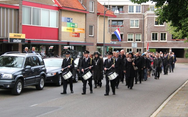 In een stille tocht liep het gezelschap van Hof 88 naar het Van Dronkelaarplein om daar om 20.00 uur twee minuten stil te zijn.