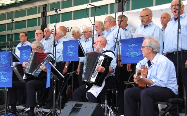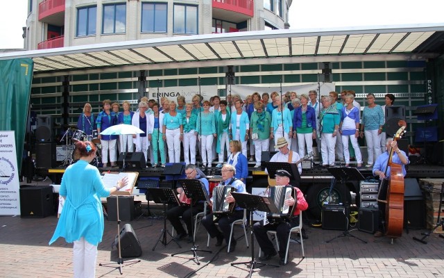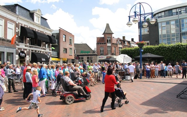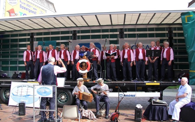 Muziek, zang, zon en veel mensen in de binnenstad zondag. Het Almeloos Shantykoor De Oostvaarders vierde het 10-jarig bestaan met een internationaal festival. Tien koren waren gecontracteerd die optraden op vijf podia door de binnenstad.