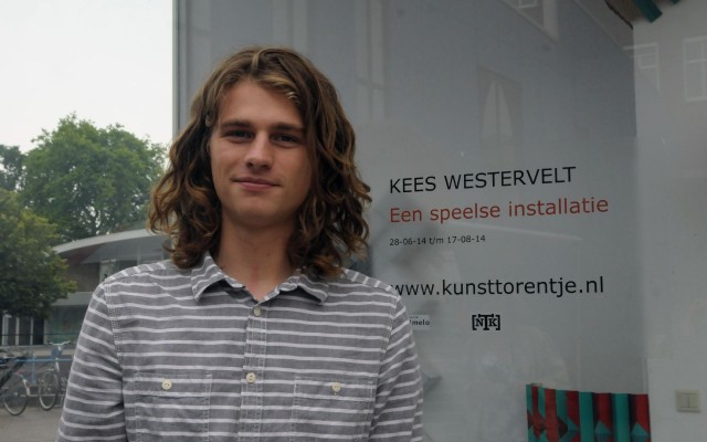Kees Westervelt(1992), installatiekunstenaar staat tot en met 17 augustus met een werk in het Kunst-Torentje. Zijn werk is kleurig en een tikkeltje raadselachtig. Netzo als de ‘mocktails’ die Hilde Klaasen van Wereldhapjes bij de opening serveerde zaterdagmiddag.