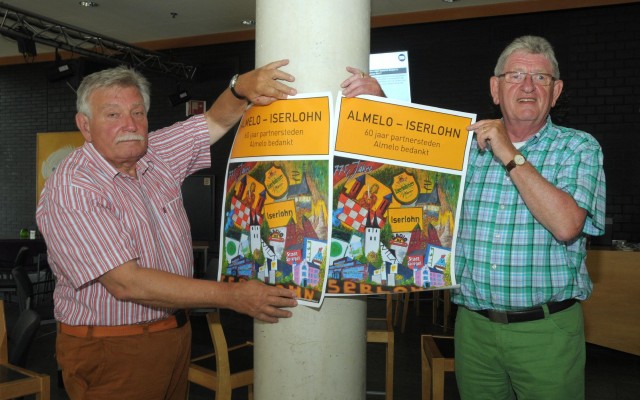 De Duitse plaats Iserlohn heeft partnerstad Almelo bedankt voor zestig jaar jumelage met een kleurige affiche die in vele etalages in de binnenstad komt te hangen. Het origineel, het werk van de kunstenaar Christoph Wieloch hangt in de kamer van burgemeester Hermans.Voorzitter Manfred Gorki van het Almelo Komitee kwam het maandagmiddag overhandigen aan collega Ton Trienen van het Iserlohn Comité.