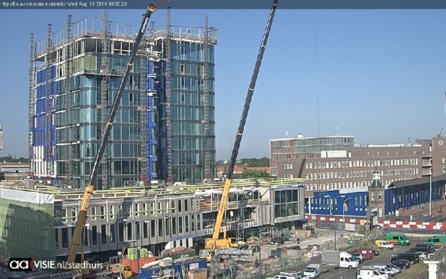 De bouw van het nieuwe stadhuis van Almelo heeft vertraging opgelopen. De aannemer moest 1 oktober opleveren, maar heeft aangegeven dat dit is uitgesteld tot 21 november. De hevige en langdurige regenval van de laatste tijd heeft voor schade gezorgd, doordat het pand nog niet helemaal wind- en waterdicht is. Hoe groot de schade is wordt onderzocht. Het uitgangspunt van de gemeente is dat snelheid niet ten koste mag gaan van de kwaliteit.