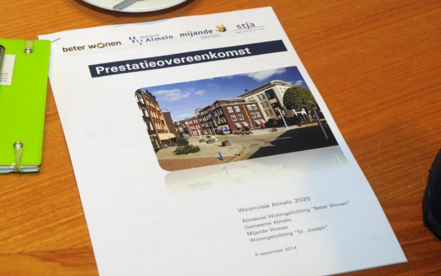 De directeuren van de woningstichtingen Beter Wonen, St. Joseph en Mijande Wonen tekenden maandagmiddag samen met de gemeente Almelo de prestatieovereenkomst bij de Woonvisie Almelo 2020.