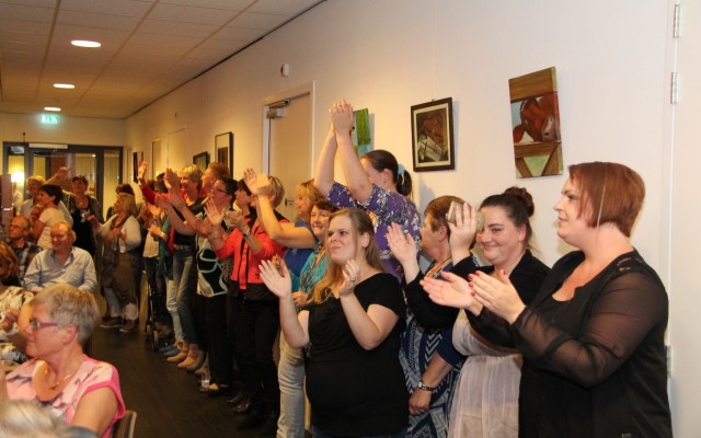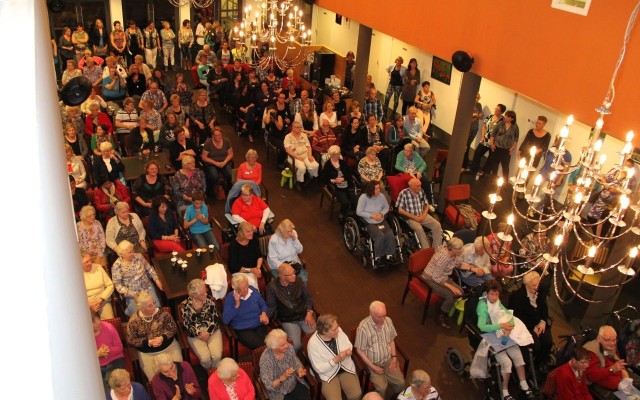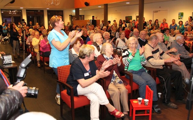 Fenneke, een verdienstelijk toetseniste begeleidde Kathy op het keyboard. Het Twentzz pop-en rockkoor swingde na de pauze onder leiding van dirigente Aafke Börger-Veenstra. Ze kregen de zaal mee met een aanstekelijke medley. De senioren gingen uit hun dak.