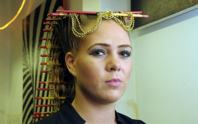 Randy van Lingen, haarkunstenaar Hans Hunter en model Sarah Jane