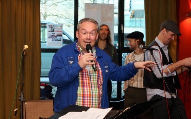Jan Riesewijk leest een gedicht van Herman Finkers voor.