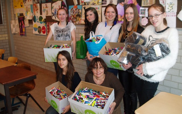Nog tot aan de zomervakantie verzamelen de leerlingen afgedankte pennen, maar de eerste dozen gaan nu naar TerraCycle, een bedrijf dat gespecialiseerd is in het verwerken van ‘onverwerkbaar’ afval. Daar worden de pennen verwerkt tot bijvoorbeeld gieters of pennenbakjes.