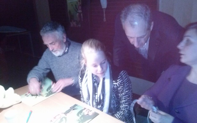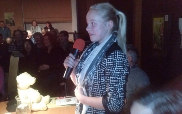 Avondwinnaar Dilara Cosar en jurylid Danique de Deugd kunt u hieronder horen en ... alle aanwezigen die deelnemen aan het verhaal van 'Hoe Joris de Draak Versloeg'.
