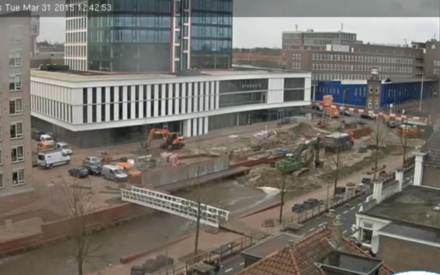 Dinsdagmorgen is er een tijdelijk brug over het water voor het stadhuis geplaatst. Tevens is men begonnen om het water in de waterboulevard te laten lopen.Door de tijdelijke brug is omlopen niet meer nodig. Het stadhuis werd maandag in gebruik genomen en is open voor het publiek. Hoe tijdelijk de brug er blijft liggen ligt aan de financiën. Het is de bedoeling dat het later een soort ophaalbrug wordt zodat er vaartuigen kunnen passeren.