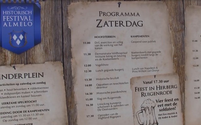 De eerste tenten staan opgesteld. De Fransen en geallieerden maken zich klaar voor de Slag om Ruygenrode. Het Historisch Festival 2015 bevolkt drie dagen het Schelfhorstpark in Almelo.Deelnemers aan het festival komen vanuit heel Europa om mee te doen. De weersverwachtingen zijn goed, dus het belooft opnieuw een groot en druk bezocht spektakel te worden.