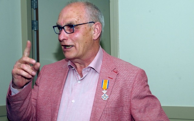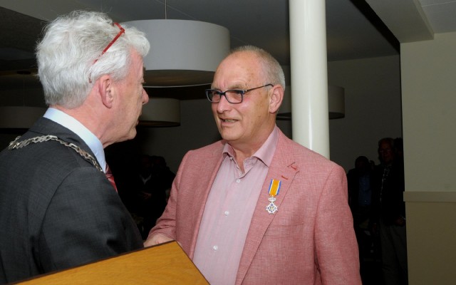 VOETBAL - Vrijdagavond was het feest in het nieuwe clubgebouw van ASV'57 in Aadorp. Burgemeester Urlings kwam op bezoek om voorzitter Gerard Hondebrink in het zonnetje te zetten. De 62-jarige voorzitter kreeg van de burgemeester de koninklijke onderscheiding uitgereikt.De Aadorper werd onderscheiden met de titel Lid in de Orde van Oranje Nassau. Hondebrink zit al jaren in het bestuur van ASV'57 waarvan sinds 2003 als voorzitter. In 1990 werd hij al lid van verdienste bij de club. Hondebrink was ook de motor achter de bouw van het nieuwe clubhuis.