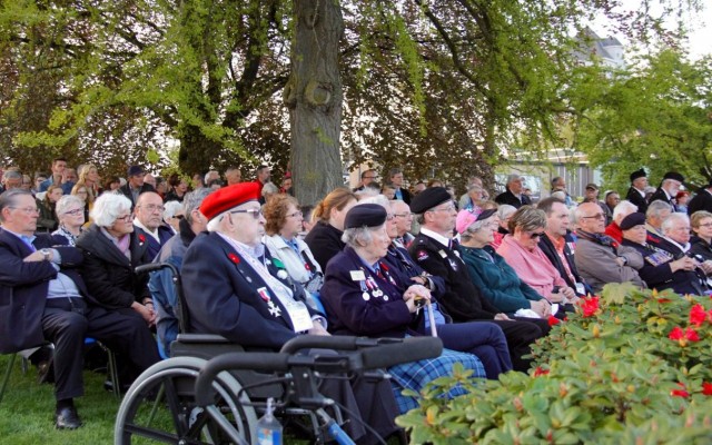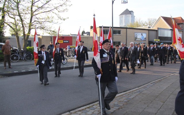 Veel belangstelling was er ook dit jaar bij de dodenherdenking op het Weth. van Dronkelaarplein. Zeventig jaar na de bevrijding deden er ook veel veteranen mee die vanuit Canada zijn overgekomen om aan de herdenking deel te nemen. Plaatsvervangend burgemeester Urlings hield een van zijn laatste speeches in die functie. Alicia Denkers, leerling van het Noordik, las een gedicht voor. Vanwege de aanwezigheid van de Canadese veteranen werd naast het Wilhelmus ook het Canadese volkslied gespeeld.