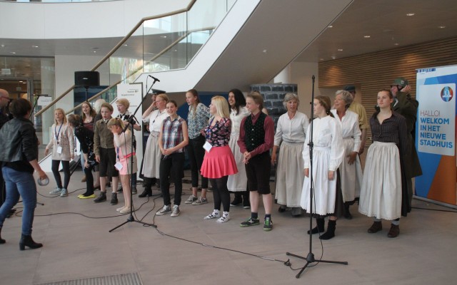 Enigszins schoorvoetend kwamen de eerste bezoekers het nieuwe stadhuis binnen op de eerste van vier openhuis avonden. Het werd een warm welkom via twee generaties Stadsomroepers en het koor uit de succes-musical "Van Katoen En NU".
