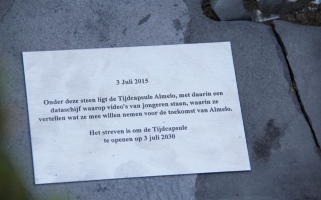 In de tuin van het Stadsmuseum Almelo is een tijdcapsule begraven. Leerlingen van 22 scholen hebben een video gemaakt met daarop onder meer wat zij mee willen nemen naar het jaar 2030. Die opnamen zijn éénmalig uitgezonden op AAvisie op 2 juli en worden nu voor 15 jaar in de grond bewaard. In 2030 gaat het project verder met een terugblik. Bestaan de dingen nog die de leerlingen nu wilden behouden? Of hebben we geen idee meer waar ze het over hebben. In 2030 wordt de capsule weer opgegraven. Zorgt u dat u er dan ook bij bent?