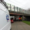 Vrachtwagen klem onder viaduct Schuilenburgsingel