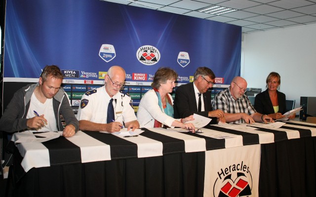 Vorige week zaterdag is het veiligheidsconvenant ondertekend door Heracles Almelo, de gemeente Almelo, de politie Twente, het Openbaar Ministerie en afgevaardigden van de supportersverenigingen Hart voor Heracles en Black White Army Vriezenveen. Deze partijen hebben allen een belang bij een ordelijk verloop van een (thuis)wedstrijd. Deze overeenkomst heeft als uitgangspunt dat het bezoeken van een betaald voetbalwedstrijd veilig en aantrekkelijk moet zijn, zoals we in Almelo gewend zijn.