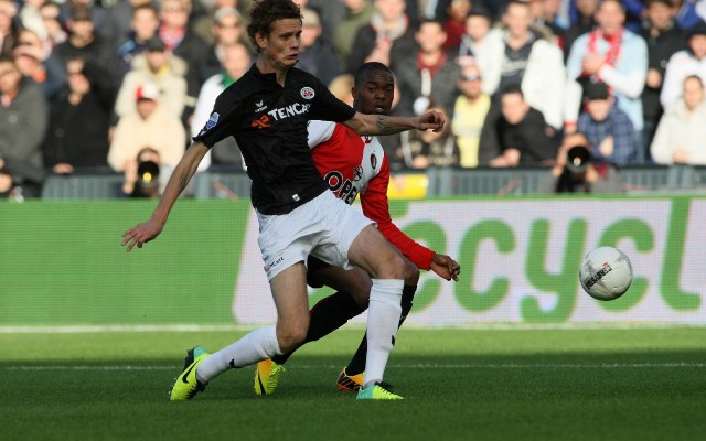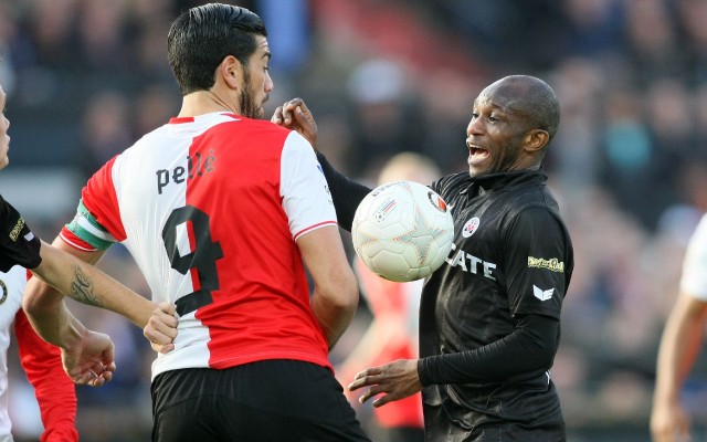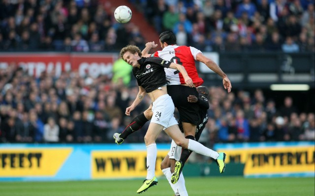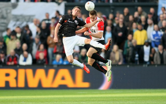 Pelle (Feyenoord) kreeg in de 89e minuut rood na een kopstoot bij Mile te Wierink.