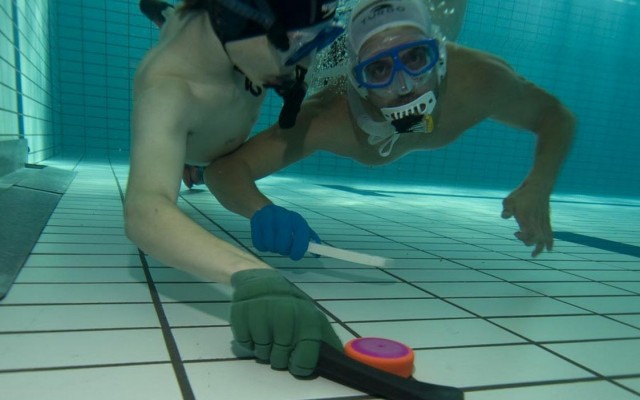 Met een alternatieve training in zwembad Het Sportpark heeft Heracles Almelo woensdag de boog ontspannen. Er werd een partijtje onderwaterhockey gespeeld.Alleen Quansah, Amoah en Rosheuvel hielden het droog woensdagmorgen. De andere Heraclieden zetten de snorkel op het hoofd en waagden zich aan een partijtje onderwaterhockey, georganiseerd door de onder- watersportvereniging Galathea. De bijzondere training stond al in de planning. Deze week kan de trainingsdruk wat minder, omdat dit weekeinde er interlandvoetbal is.