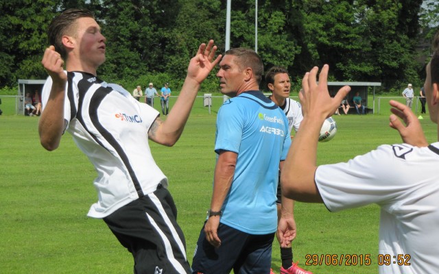 Maandagmorgen is Heracles begonnen met de eerste training in de voorbereiding naar het nieuwe seizoen. Breukers en Vujicevic waren er nog niet bij. Ook Linssen trainde niet mee. Proefspeler Daniël Neustädter, een 20-jarige linker centrale verdediger, traint voorlopig mee. Trainer John Stegeman was met de nieuwe staf aanwezig, dus ook Hendrie Krüzen en Peter Reekers. Wij spraken met de nieuwelingen Gino Bozs, Peter van Ooijen, Robin Goossens en de nieuwe teamleider Edwin van Lente. U hoort ze hieronder.