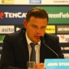 Met een glimlach op zijn gezicht stond trainer John Stegeman...