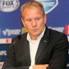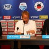Trainer Jan de Jonge zat er beteuterd bij tijdens de perscon...