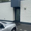 Een automobilist is met zijn voertuig tegen een gebouw gekna...