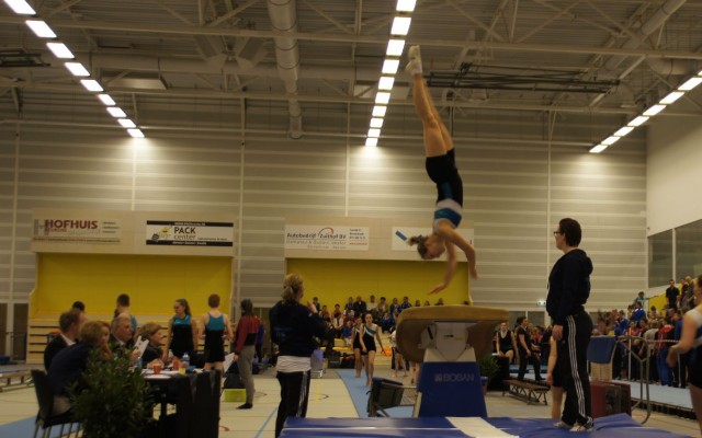 TURNEN - De springploeg van FAG Almelo heeft weer een goed resultaat behaald op het onderdeel Pegasus tijdens de Nederlandse Kampioenschappen B-lijn. Deze wedstrijden groepsspringen werden zaterdag gehouden in de IISPA. De dames scoorden 22.00 punten (9.2 voor uitvoering en 12.8 voor moeilijkheid) en dat was goed voor de derde plaats.De damesploeg die in de A-lijn meedeed viel niet in de prijzen. Het totaal van 19.90 punten was goed voor de negende plaats. Een aantal vallen drukte het puntentotaal zodanig dat een hoge score uitbleef.