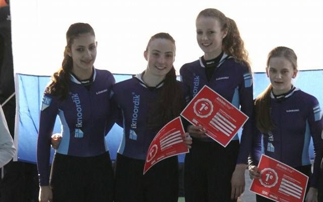 SCHAATSEN - De dames van Het Noordik waren veruit de beste tijdens de nationale scholenploegenachtervolging in Hoorn. Na een zinderende strijd heeft het damesteam (licentiehouders meisjes t/m 14 jaar) van Het Noordik in de categorie 1A de Nederlandse titel in de wacht gesleept. Met een tijd van 1.37.63 vestigden ze bovendien een nieuw Nederlands record en lieten de nummer twee met een verschil van ruim vier seconden achter zich. Het jongens recreantenteam 15 t/m 17 jaar (SDV-opleiding Van Renneslaan) haalden de finale-ronde niet.