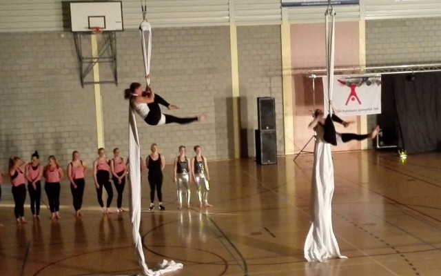 TURNEN - De FAG-Almelo en het District Oost/werkgroep demo's van de KNGU hebben zaterdag in de sporthal aan de Sluiskade een goed en leuk Gym en Dans Gala laten zien. De avond werd geopend door wethouder Van Marle.Zo'n 22 groepen hadden zich opgegeven om een jazzdans of een ander onderdeel te laten zien. Alle groepen toonden op muziek en een prachtige lichtshow hun nummer. Zo gaf de FAG-groep een springdemo en gaf de groep Aerial Silk, met en aan doeken, een spectaculaire show. Een prachtige avond met veel show en durf voor het publiek.